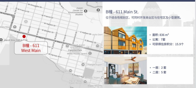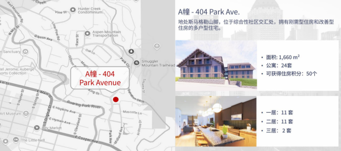 2.项目地理位置:项目选址于亿万富豪第二家园、世界顶级滑雪胜地科罗拉多州阿斯彭,具体为404 Park Avenue-611 West Main Street, Aspen,Colorado;