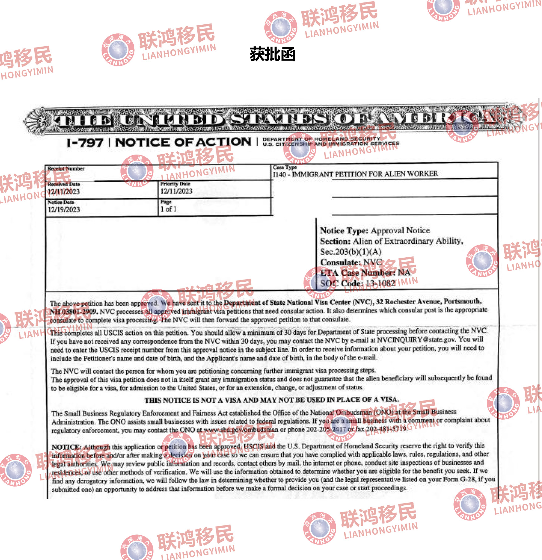F 先生于2023 年5 月与我司正式签订合同,委托我司办理美国EB1A 的申请事宜,移民局于2023 年12 月11 日成功接收我们为T 先生递交的I140 加急申请,在2023 年12 月19 日一次性获批。客户:F 先生