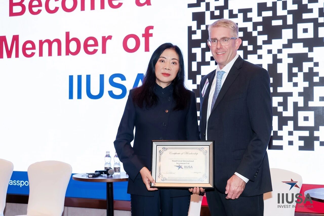 现场,邹丽娟女士也代表联鸿海外接受了美国EB-5移民行业协会IIUSA(Association to Invest In the USA)颁发的会员资格证书。