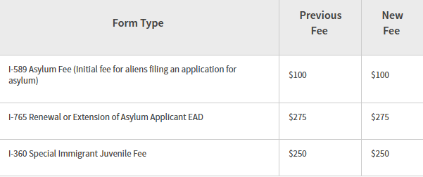 ⭕️ I-360 特殊移民青少年费用:费用仍为 250 美元;
