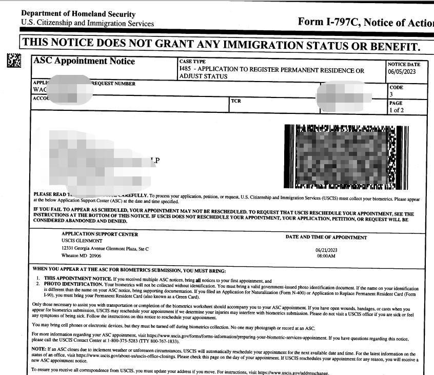 H小姐的父母也了解到了投资移民新政策,姑姑强烈推荐H小姐到联鸿办理。因为H小姐是在美国上学,所以于今年4月中在联鸿的帮助下递交了I-526E申请和I-485转身份申请到美国移民局,递交I-485一个多月后就收到了美国移民局工卡打指纹通知。