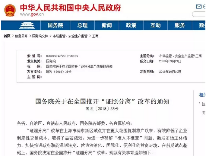 近日,国务院发布了“关于在全国推开“证照分离”改革的通知”,在106项实行“证照分离”改革的事项中,