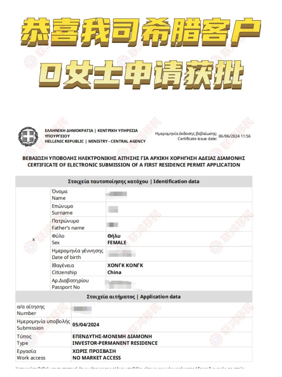 联鸿喜报!恭喜希腊客户D女士成功获批