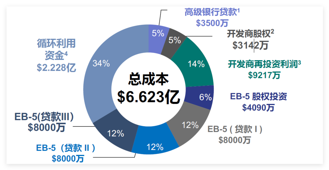 5.资金结构:EB-5(贷款III)仅占总投资的12%, 项目总成本6.623亿,项目已产生充足稳定现金流,不依赖于EB-5资金;