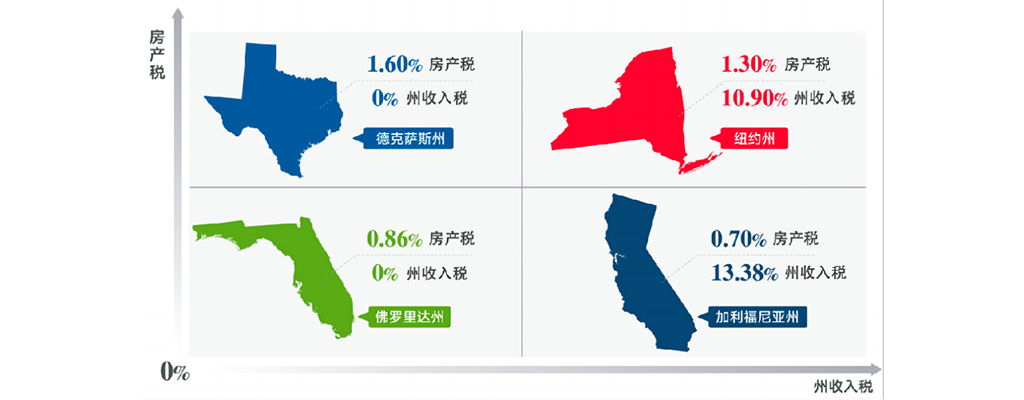 1、美国最具税率优势的州:佛罗里达州的州收入税为0%,房产税为0.86%。