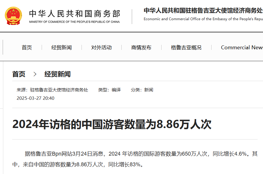 5月上旬在广州南沙举办的格鲁吉亚投资交流会上,格鲁吉亚驻华大使巴阿达·卡岚达泽(Paata Kalandadze)在致辞中指出,中国企业在格鲁吉亚基建、物流、制造、服务等传统领域已广泛布局,2024年中格双边贸易额达19.2亿美元,旅游业亦成双方合作新亮点,免签政策与直航航班推动中国游客持续增长。