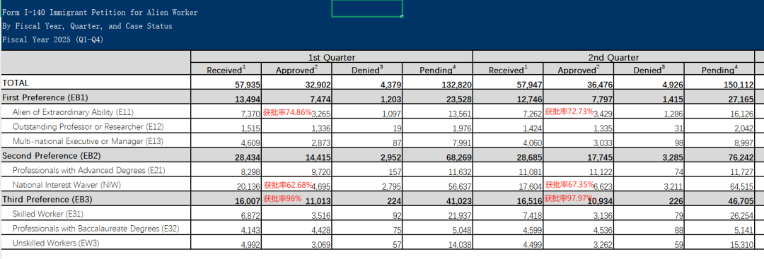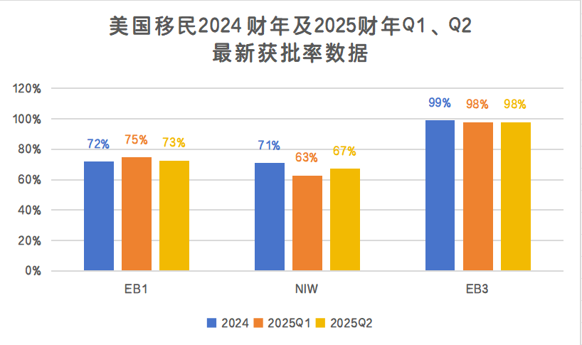高技能移民类别:EB-1A/NIW 批准率呈季节性调整,EB-3 持续高位稳定