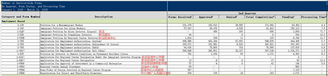 美国移民局数据显示,2025 财年 Q2 EB-5 新法申请量达 1918 件,平均每月 639 件,较 Q1 的 1422 件环比激增 35%,刷新历史纪录。其中:
