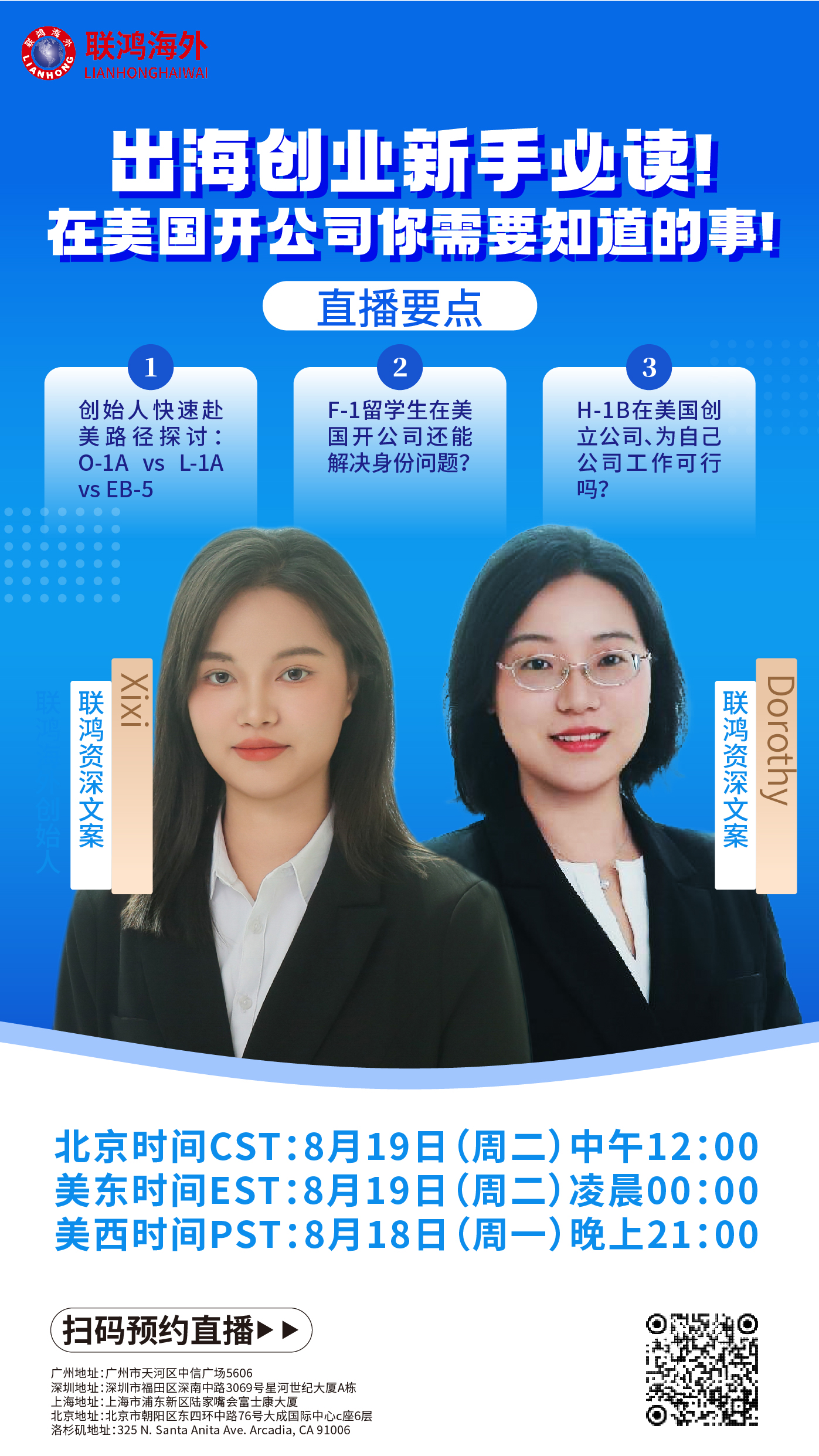 8月19日12点:出海创业新手必读!在美国开公司你需要知道的事!