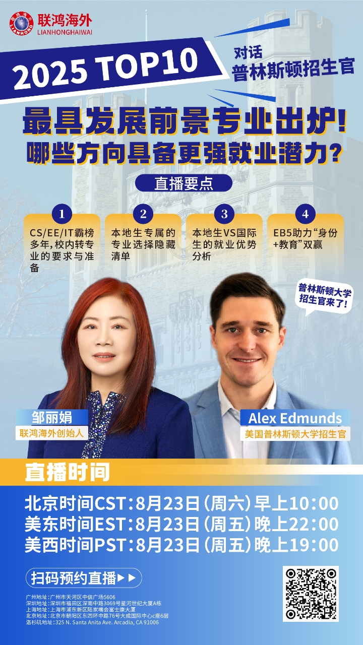 8月23日10点:对话普林斯顿招生官:2025 TOP10最具发展前景专业出炉!哪些方向具备更强就业潜力?