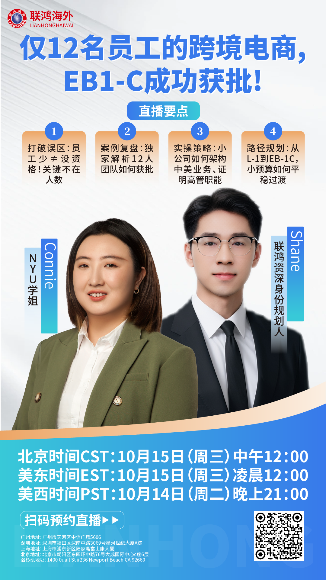 10月15日12点:仅12名员工的跨境电商,EB1-C成功获批!