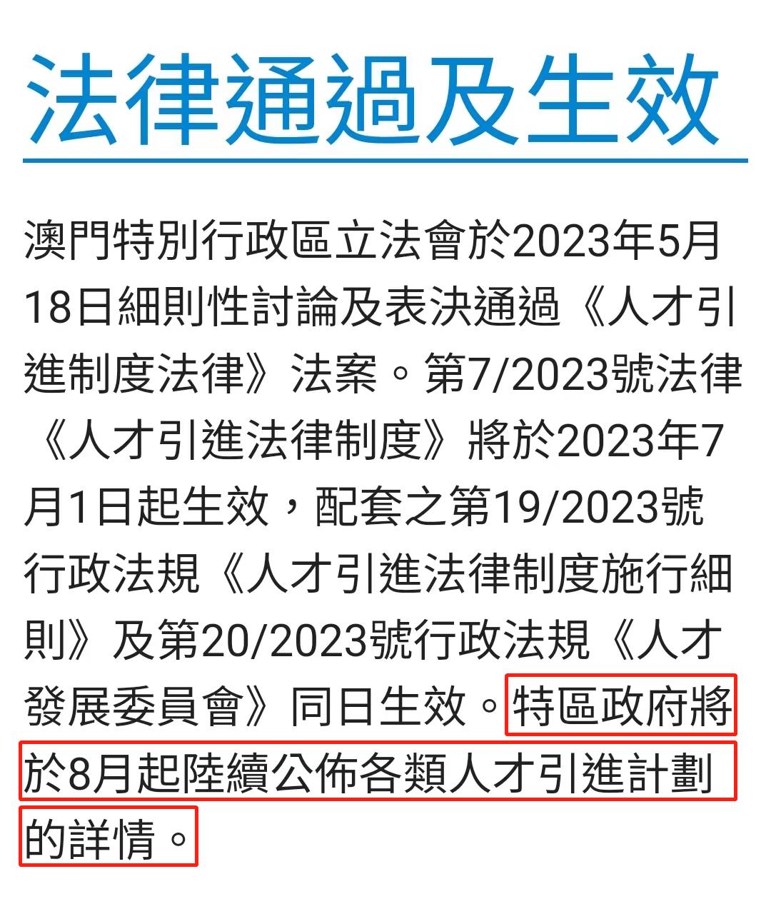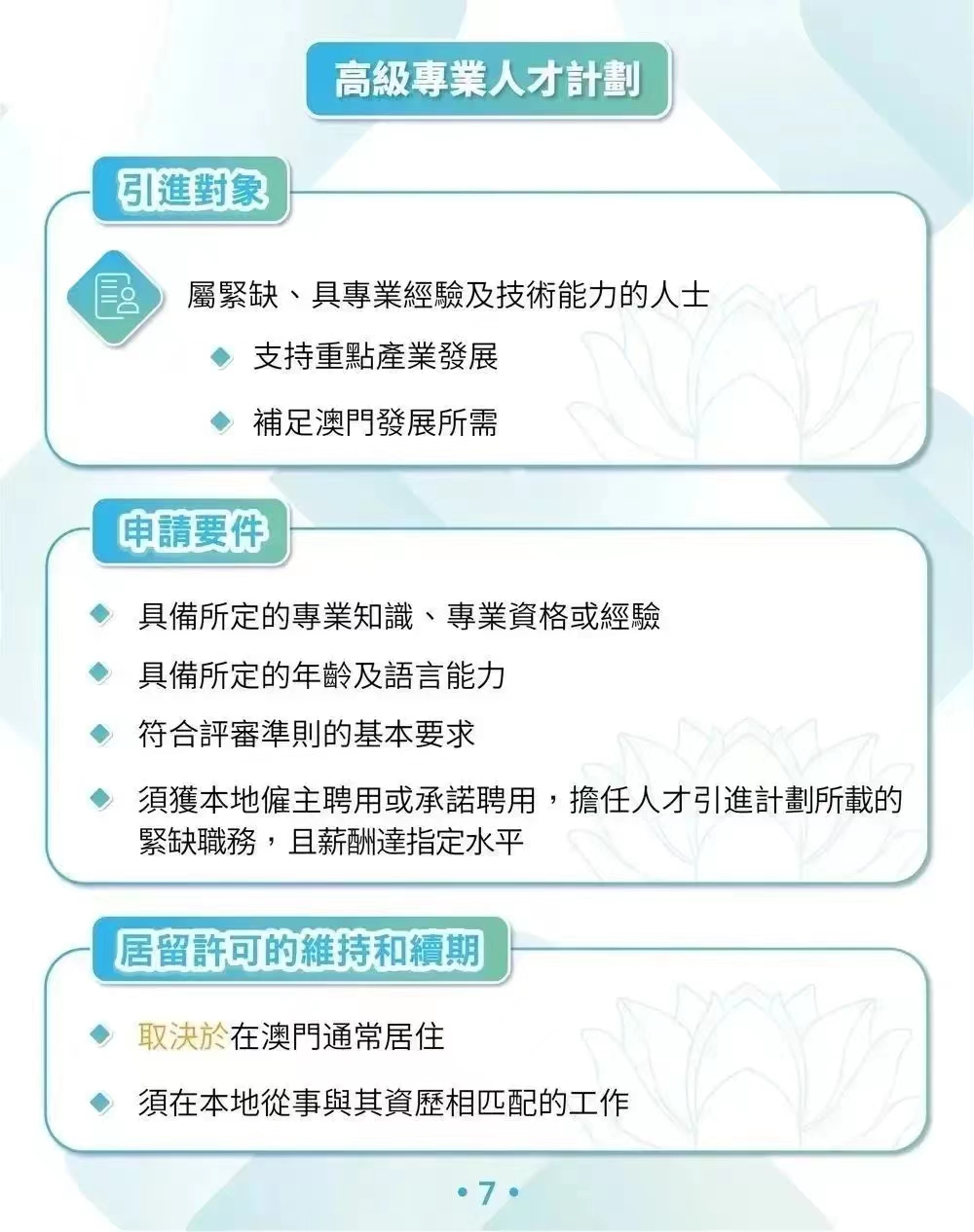 「联鸿移民」澳门人才引进计划详情特区政府将于8月份陆续公布