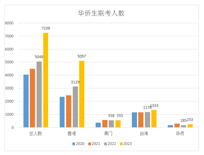 从以上数据可以看出香港考生猛增,2023年比2022年增加了1968人(5097-3129)。