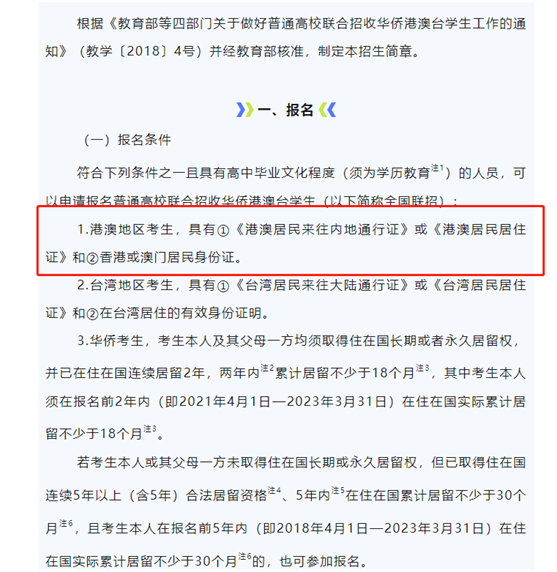 所以若内地居民想要以香港或者澳门的身份参加华侨生联考,必须具有香港或澳门居民身份证和《港澳居民来往内地通行证》,俗称回乡证。