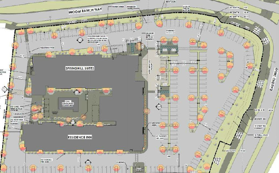 JF31 - 圣路易斯万豪酒店是一个全新的万豪双品牌酒 店 开发项目。这座 4 层酒店位于加利福尼亚州圣路 易斯奥比斯波,一侧是包含 110 间客房的万豪居家 酒店 (Residence Inn),另一 侧是包含 90 间客房的万豪 春丘套房酒店 (SpringHill Suites)。项目占地 3.14 英亩, 包括约 200 个地面停车位和游泳池。