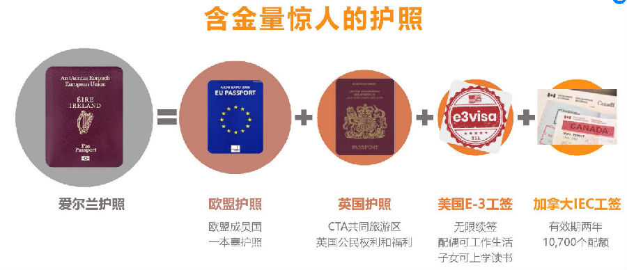 爱尔兰投资移民政策对申请人没有英语要求,没有年龄限制,没有经商背景要求,而且还没有移民监!持爱尔兰居留身份,满足相应居住要求,可按照相关条件转申爱尔兰护照。爱尔兰是六大英语国家之一,拥有爱尔兰护照可以跳板英美,欧盟资源一网打尽,还可以免签或落地签全球187个国家和地区!
