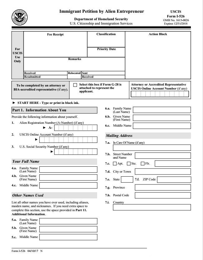 近日,美国移民局在其官网上发布了最新版本的I-526申请表,(网址:https://www.uscis.gov/)这个新表将从2017年6月9日起开始执行。
