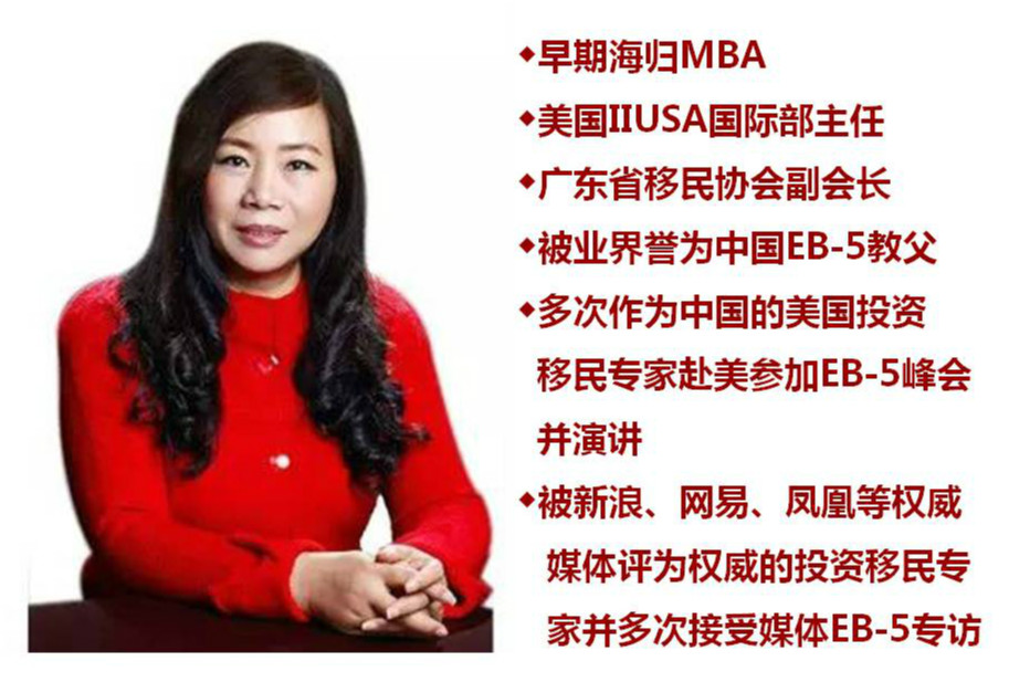 演讲嘉宾简介:邹丽娟是联鸿移民的总裁,是中国美国投资移民的先驱。于2004年起在中国率先推介美国投资移民,创造了业界的多个第一, 2004年的第一个投资移民项目杏仁农场除了获得829正式绿卡,而且获得双倍的回报,至今已成功推出80多个EB-5项目,无一失败。第一个引进酒店类EB5项目, 洛杉矶万豪酒店EB5项目除获得绿卡, 投资人每月分红约2500美元,年回报达5%左右。将移民项目做成高回报的投资项目, 业界罕见。