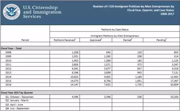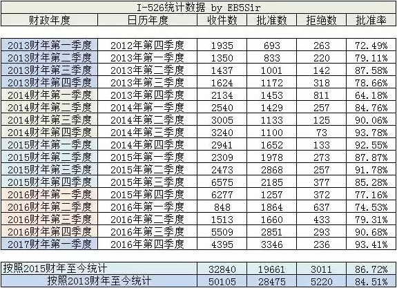 1、 移民局开始加速审理I-526申请,本季度批准3,346份申请,这几乎等于2012、2013年全年,2014年80%,以及2015年40%的批准量。