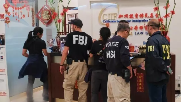 继周二的突击行动之后,联邦调查员周三突击搜查了位於圣盖博谷的多处私人住宅及办公室,进行大面积签证及金融欺诈调查。