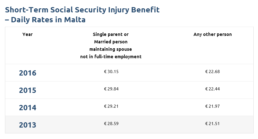 如果意外受伤,普通人能享受到每天22.68欧元的补贴。单亲妈妈/爸爸或者已婚人士但配偶为主要收入来源且没有在全职工作的,可以领到30.15欧元/天。
