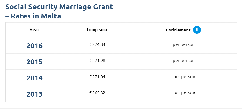 在马耳他注册结婚,男女双方每人能领到一次性274.84欧元的结婚礼金。